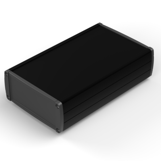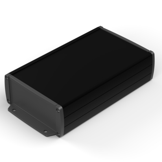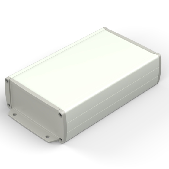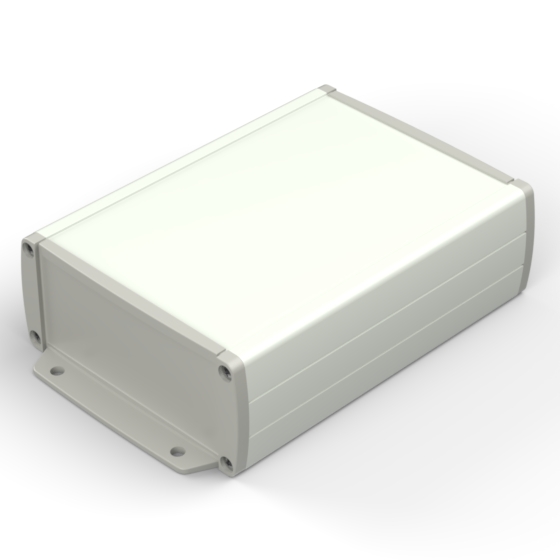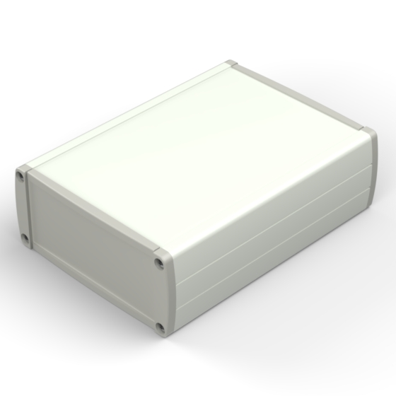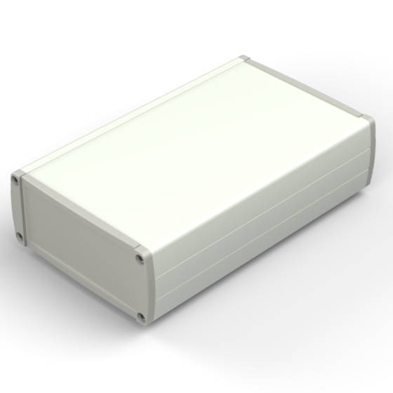 Extruded aluminium cases with high quality painted finishing. Two ABS front panels, internal slots for PCB’s and a recessed area for a keypad membrane. Six standard models are available with different sizes. The models with “-E” have mounting wall panels. Closing by eight screws