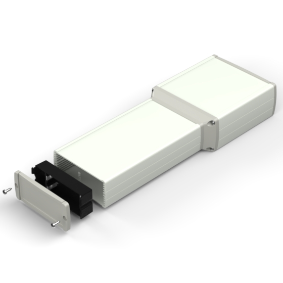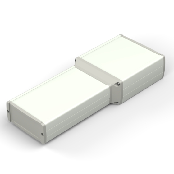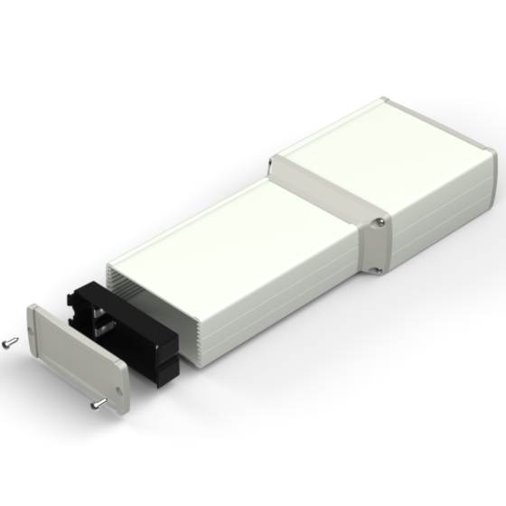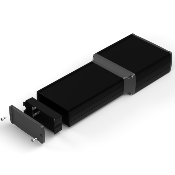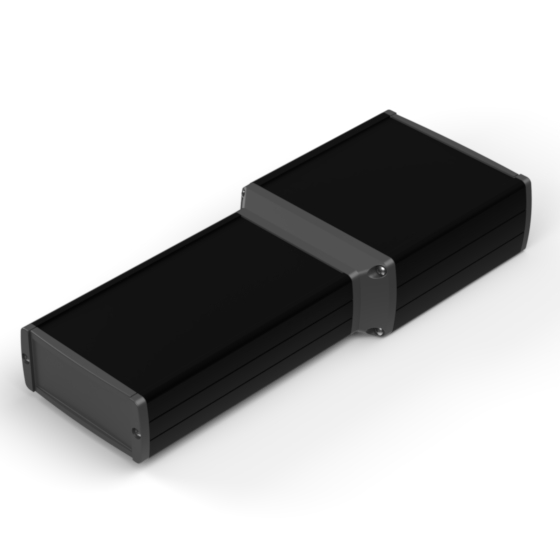 Extruded aluminium cases with high quality finishing, ergonomically designed for a comfortable fit into the user’s hand. Perfect for instrument or mobile data enclosures requiring a keypad and display. Internal PCB guides. The model with “-B” has a battery compartment for two 1,5V mignon-cells (AA) or one 9V battery (PP3). Closing by twelve screws.