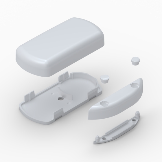 The smaller container is designed for the magnet housing, and is equipped with two interlocking caps to cover and protect the wall mounting screws.
