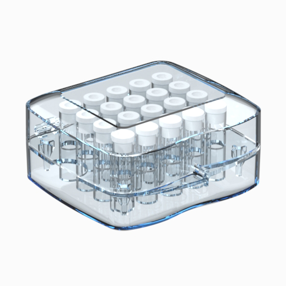Attractive and modern designed, this box is moulded in transparent metacrylate. It holds twenty tubes with a height of 25 mm or of 40 mm, ideal to store and organise small electronic components.